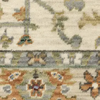 Grey Ivory Gold Salmon Red Blue And Green Oriental Power Loom Stain Resistant Runner Rug With Fringe