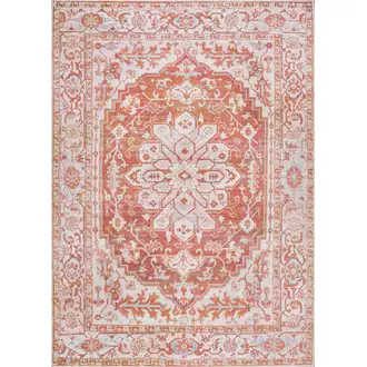 Ivory Grey Rust Red Gold And Shades Of Blue Oriental Power Loom Stain Resistant Area Rug With Fringe