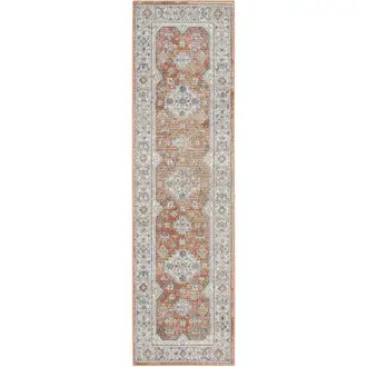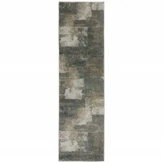 Beige Tan Brown Blue Purple Red Orange Gold And Green Abstract Power Loom Stain Resistant Runner Rug