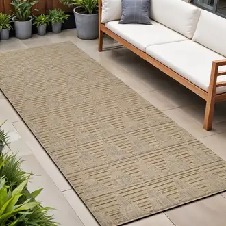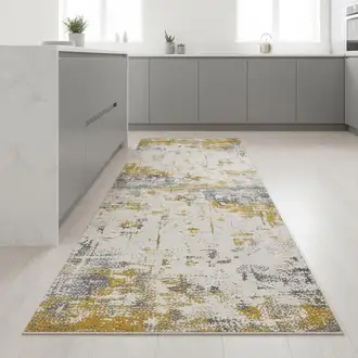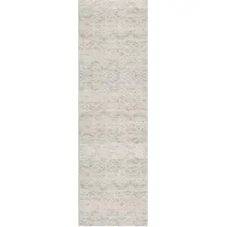 8' Brown Yellow And Green Wool Floral Hand Knotted Distressed Stain Resistant Runner Rug With Fringe