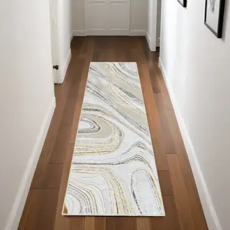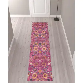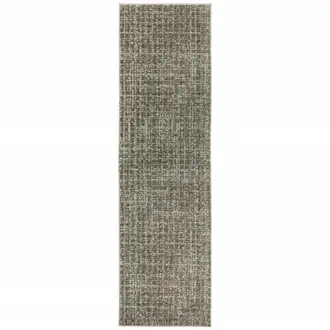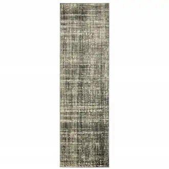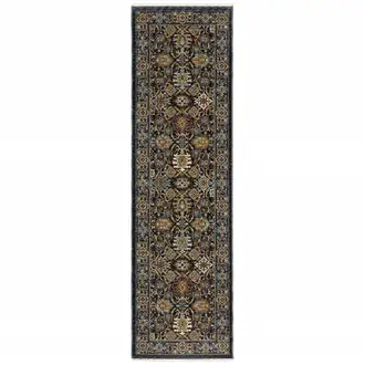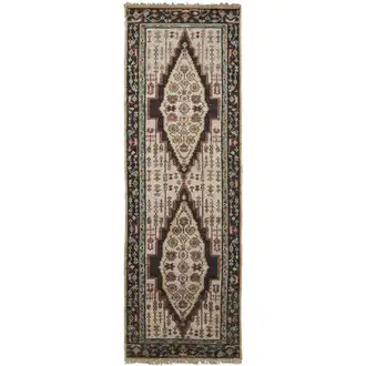 8' Brown Yellow And Green Wool Floral Hand Knotted Distressed Stain Resistant Runner Rug With Fringe