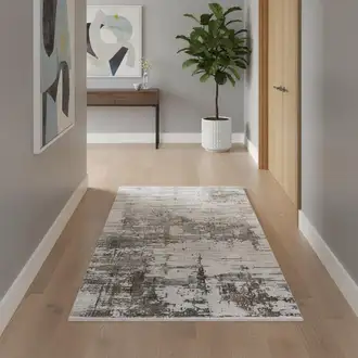 8' Brown Yellow And Green Wool Floral Hand Knotted Distressed Stain Resistant Runner Rug With Fringe