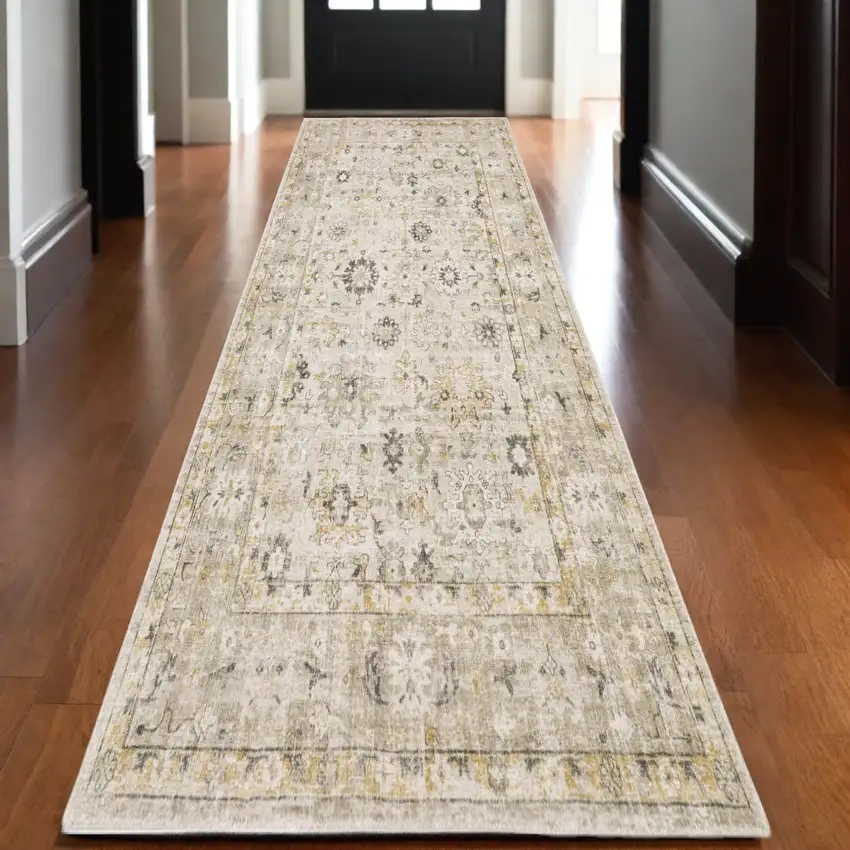 10' Beige And Gold Oriental Hand Tufted Runner Rug