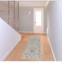 10' Beige Blue And Brown Oriental Distressed Runner Rug