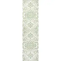 10' Blue And Ivory Trellis Indoor Outdoor Runner Rug