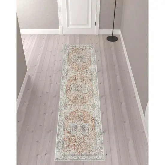 10' Gold and Ivory Oriental Power Loom Washable Runner Rug