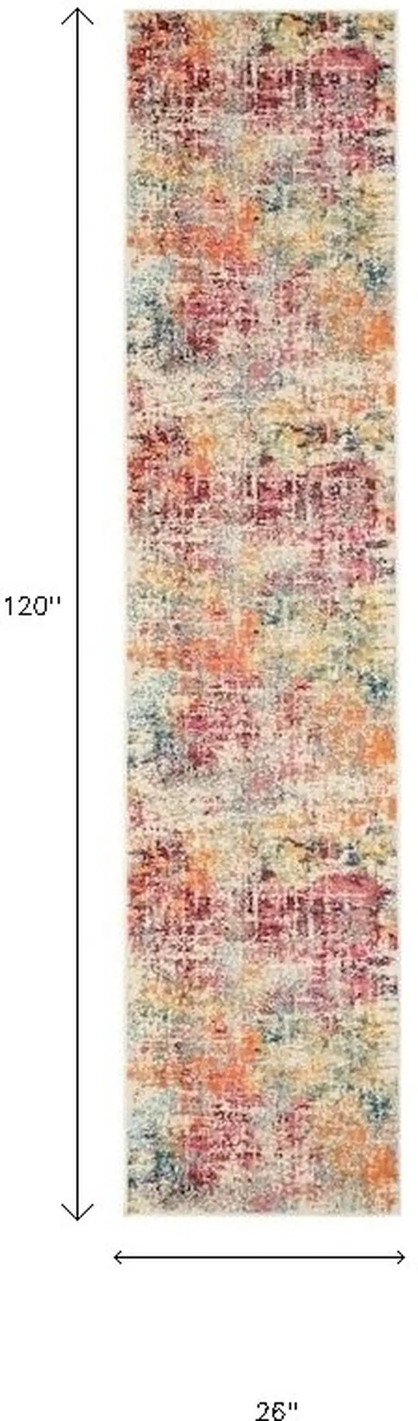 This 10-foot ivory orange and pink abstract distressed non skid runner rug, is a great way to add warmth to a room. Ideal for spaces with kids and pets, this rug is stain resistant to help repel dirt and spilled liquids. Built to last, this rug crafted from polypropylene fibers is known for its durability and long lasting appeal. Rugs are a great way to showcase your style, hide imperfections, warm your home and reduce noise. This rectangular shaped rug features a abstract design that will add a functional and decorative accent to your space. This contemporary styled runners makes a great accent for the hallway, in front of cabinets, in the laundry room, or any other space you need a narrow and long rug. 26-inch h x 120-inch w x 0.5-inch d
