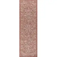 10' Light Gray And Fuchsia Geometric Indoor Outdoor Runner Rug
