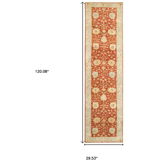 10' Red And Gray Wool Oriental Hand Knotted Runner Rug