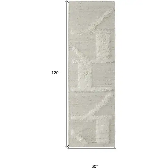 10' Tan and Ivory Wool Geometric Hand Woven Runner Rug