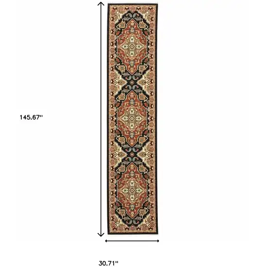 The 12' Red and Black Oriental Power Loom Runner Rug is not just a pretty face; it's also a highly functional piece that enhances the functionality of any room. Its long and narrow shape makes it a perfect fit for hallways, entryways, or any space where you want to add a touch of sophistication. The standout fringe detail adds an extra layer of elegance, making it an eye-catching feature that elevates your interior design.