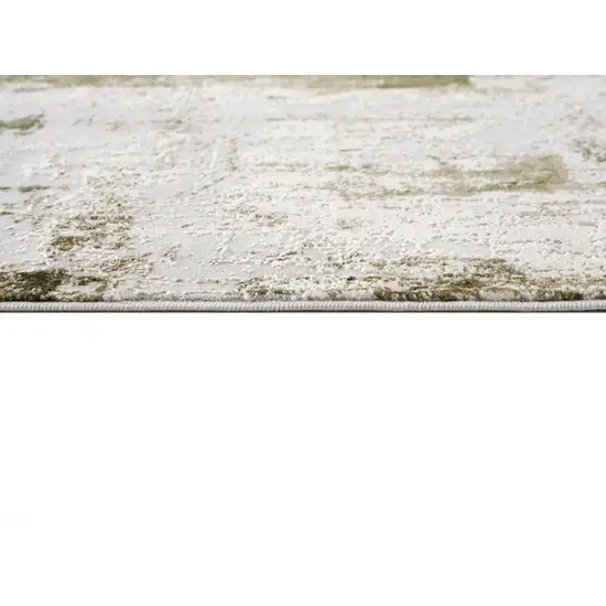 15' Green and Ivory Abstract Power Loom Distressed Runner Rug