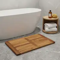 Providing a safe and dry space to step onto after a bath or shower, this 16-inch beige gray teak non slip bath mat helps to protect the floor and keep you safe while you dry off. Made of genuine teak wood, a chic and stylish material often used by hotels and spas for its supreme durability and water resistance. Features antimicrobial and mildew-resistant properties that offer several benefits, including preventing the growth of mildew and mold, maintaining a clean and hygienic bathroom environment, reducing unpleasant odors, and extending the lifespan of the mat itself. Includes a non-slip backing that provides enhanced safety, reduces fall risk, and helps to keep the mat in place, preventing shifting or sliding. 15.75-inch h x 23.25-inch w x 0.75-inch d.