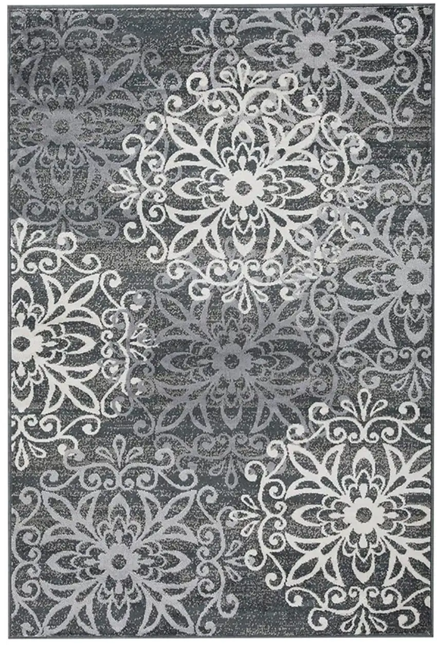 The fusion of slate and gray in the intricate medallion design accentuates its class while its power-loomed construction assures longevity. Enjoy the blend of beauty and resilience right at your feet.