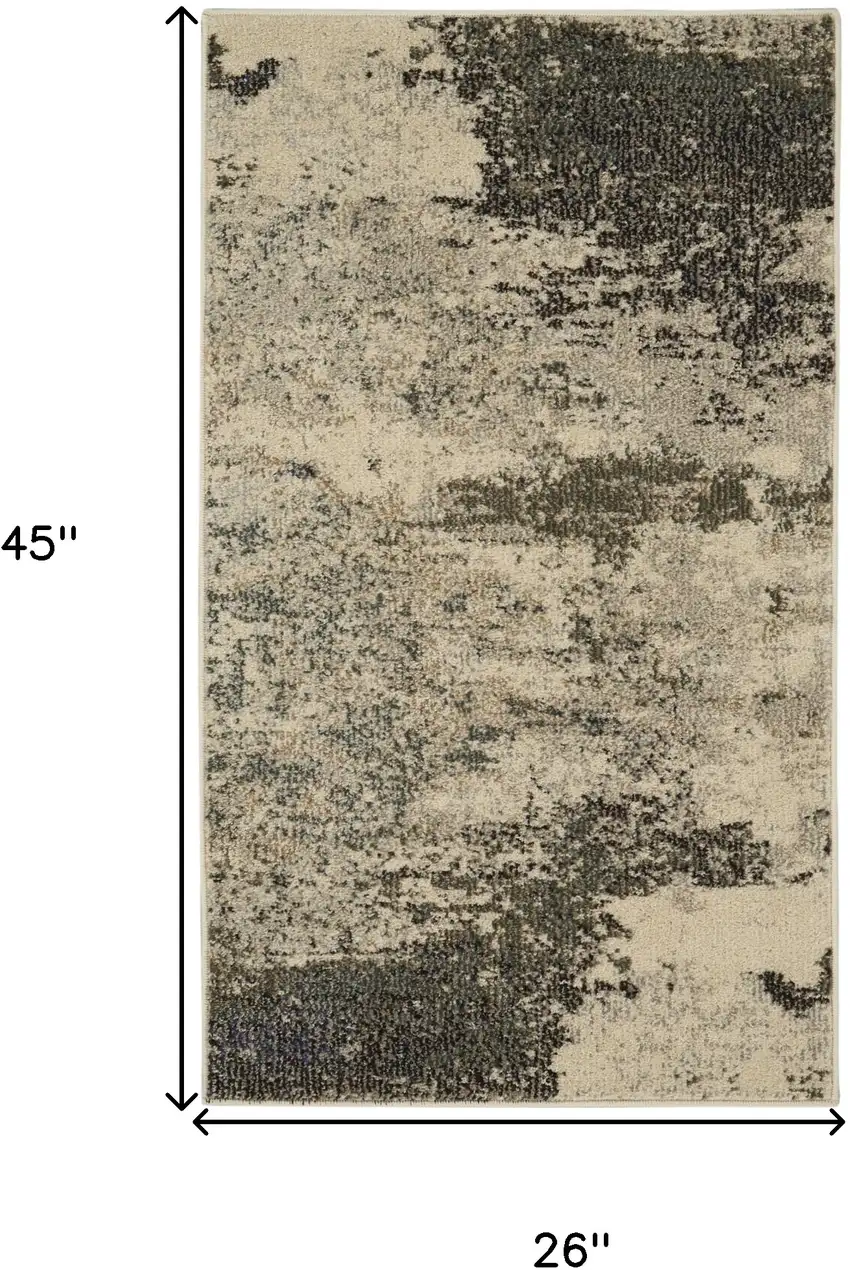 Ivory And Grey Abstract Power Loom Non Skid Area Rug