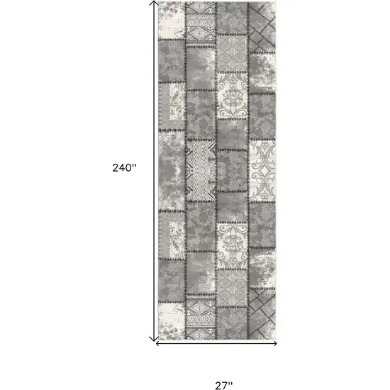 20' Gray and Ivory Geometric Washable Non Skid Runner Rug