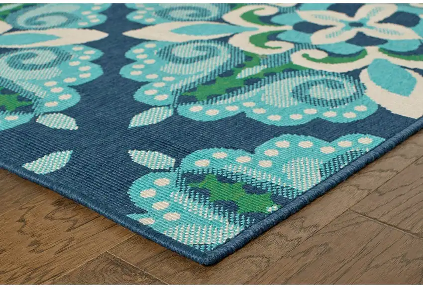 Add a pop of colour to any indoor or outdoor space with this bold, blue and green floral rug. This versatile rug is sure to enhance the design aesthetic of your chosen area.