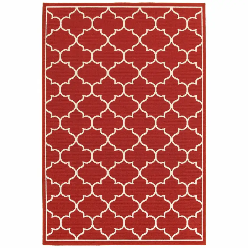 This versatile rug can accentuate your indoor spaces with a touch of warmth or add a splash of color to outdoor settings. Its vibrant red and ivory trellis pattern is perfect for those seeking a stylish yet timeless decor piece.