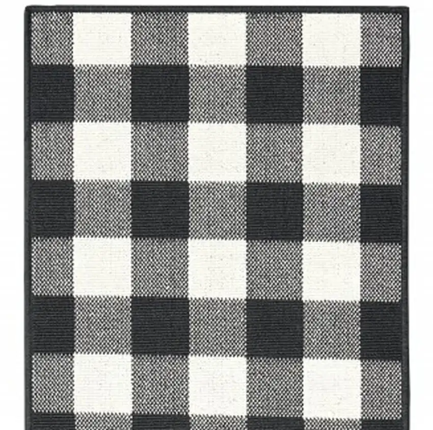 Crafted for both indoor and outdoor use, this rug is great to adorn your patio, kitchen, or entryway. The black and ivory gingham pattern adds a chic touch to your space.
