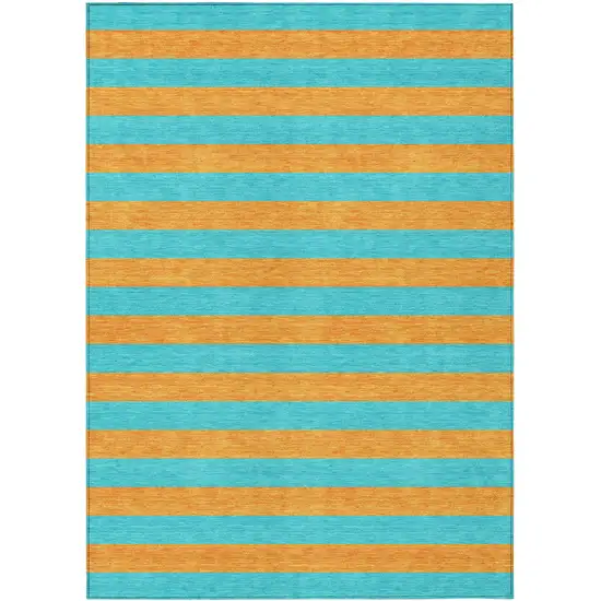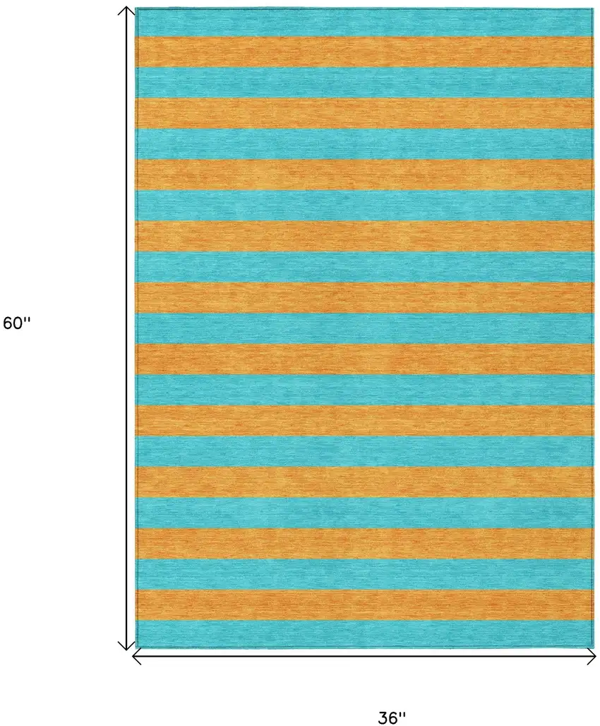 3' X 5' Aqua Striped Washable Non Skid Indoor Outdoor Area Rug