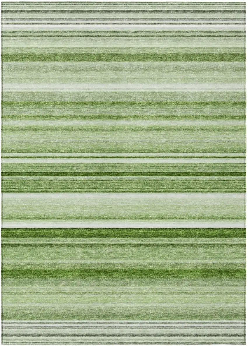 3' X 5' Artichoke Green Striped Washable Non Skid Indoor Outdoor Area Rug