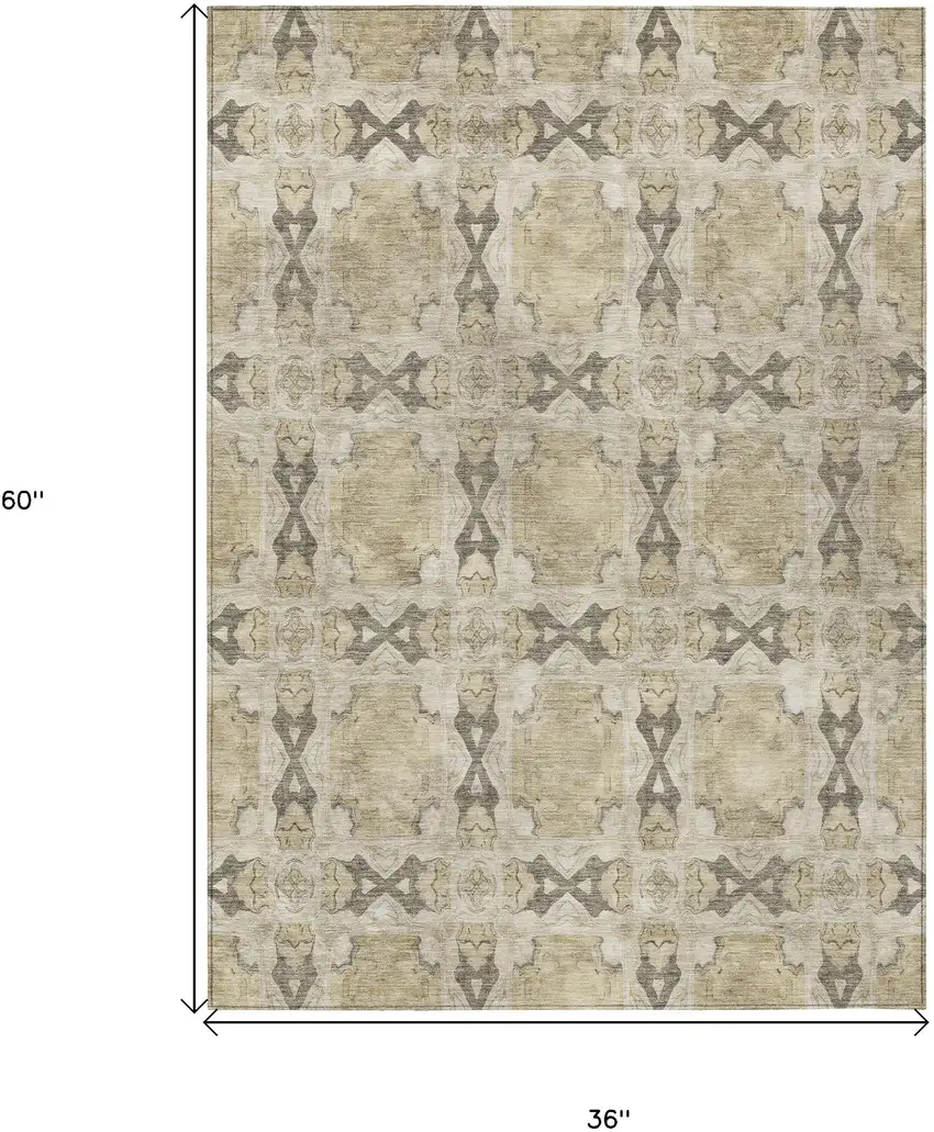 Set an inviting tone in your space with this 3-foot x 5-foot beige and gray floral medallion washable stain resistant non skid indoor outdoor area rug. This rectangle shaped rug features a floral medallion design in beige and gray to give it visual interest. A classic shape marries with good looking design for your space ideal for spaces with kids and pets, this rug is stain resistant to help repel stains and spilled liquids. Place this area rug against a hardwood or tile floor and it will enliven your living space with style and sophistication. 36-inch H x 60-inch W x 0.19-inch D