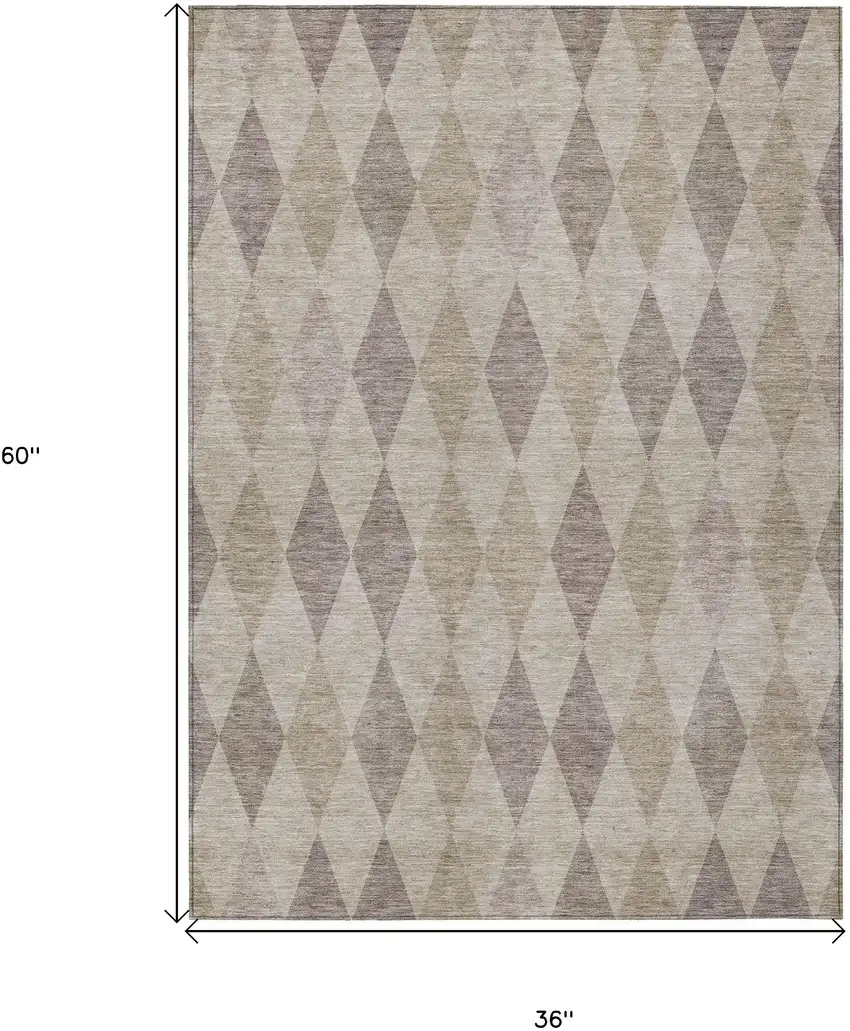Add some artistry to your room with this 3-foot x 5-foot beige taupe and brown geometric washable stain resistant non skid indoor outdoor area rug. This rectangle shaped rug features a geometric design in beige taupe and brown to give it visual interest. A classic shape marries with good looking design for your space ideal for spaces with kids and pets, this rug is stain resistant to help repel stains and spilled liquids. Place this area rug against a hardwood or tile floor and it will enliven your living space with style and sophistication. 36-inch H x 60-inch W x 0.19-inch D