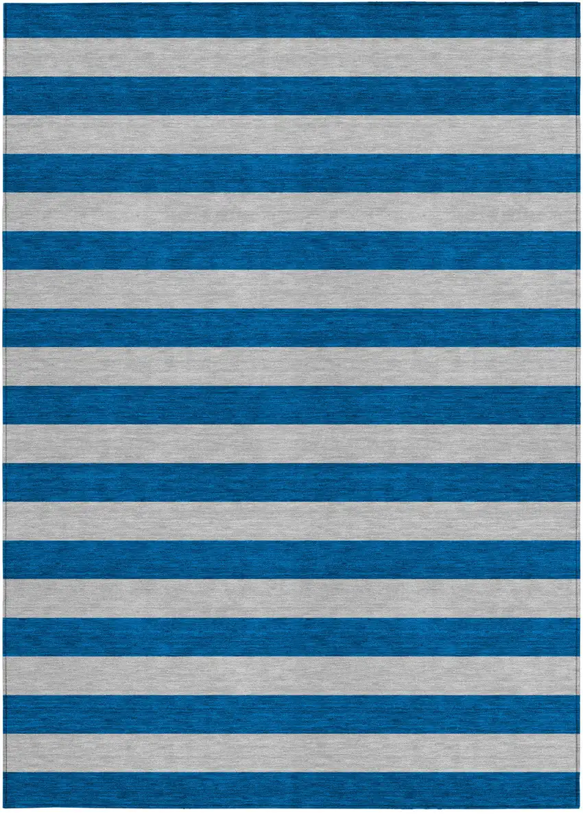 3' X 5' Blue and Ivory Striped Washable Non Skid Indoor Outdoor Area Rug