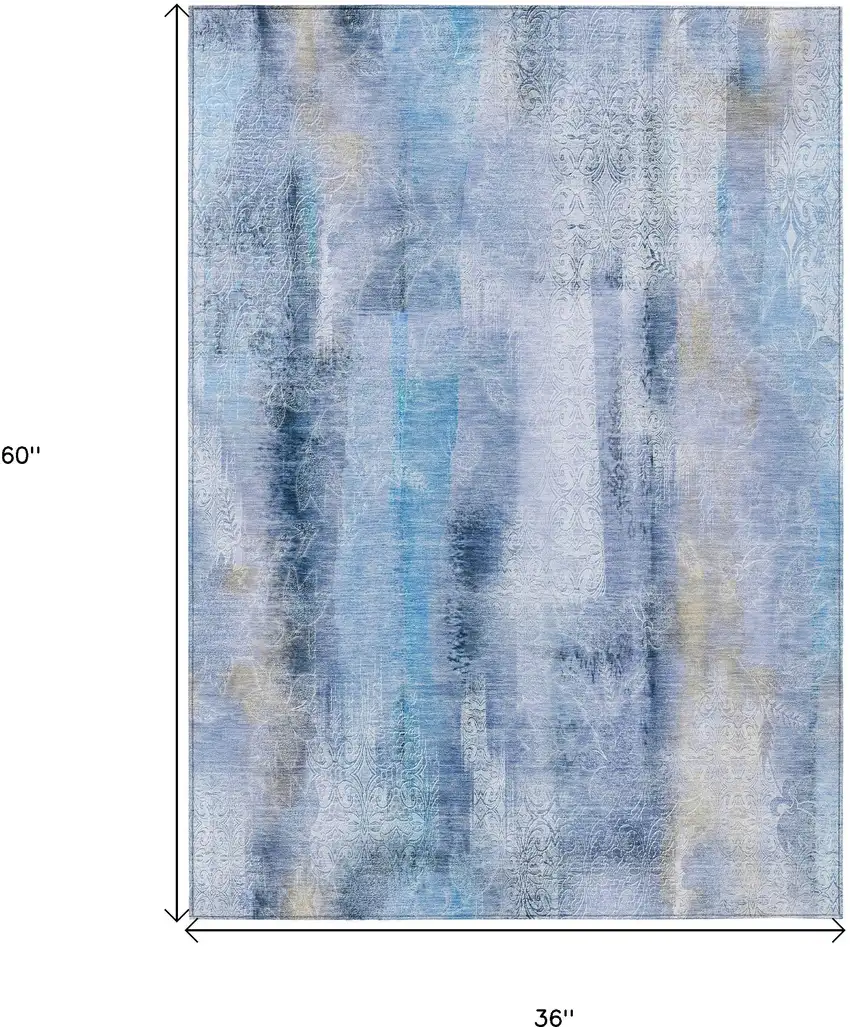 3' X 5' Blue Washable Non Skid Indoor Outdoor Area Rug