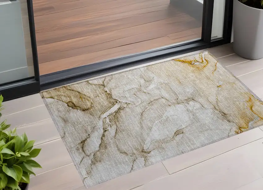 3' X 5' Brown Abstract Washable Non Skid Indoor Outdoor Area Rug