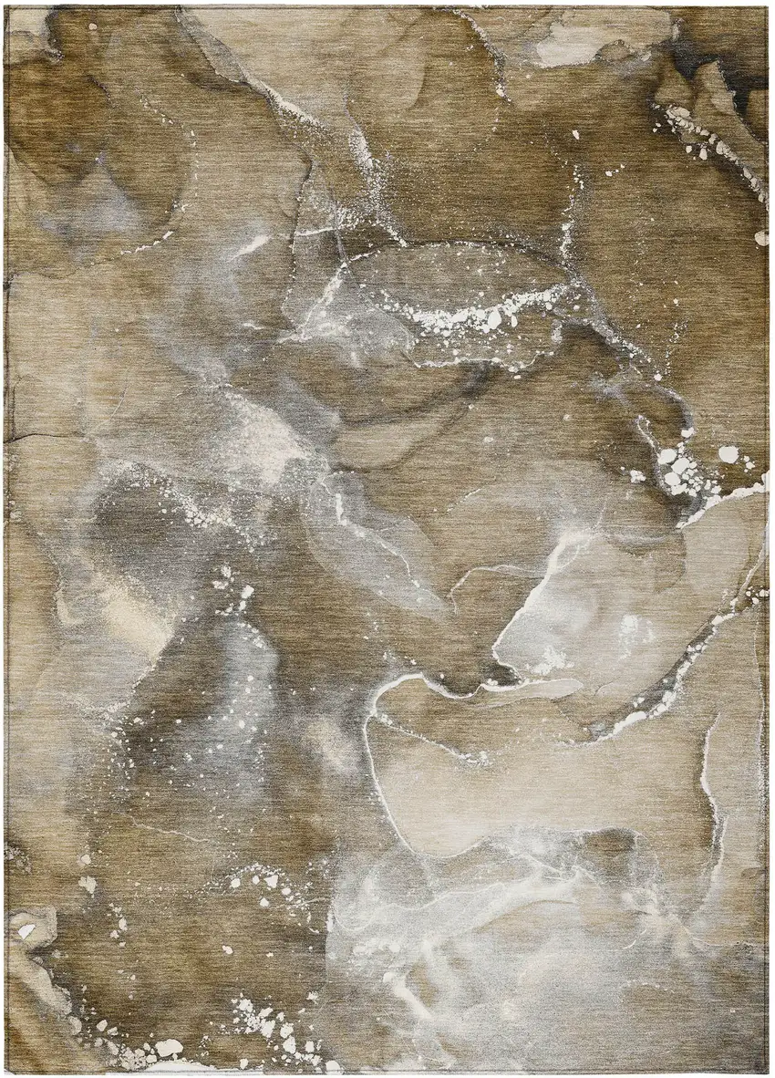 3' X 5' Brown and Gray Abstract Washable Non Skid Indoor Outdoor Area Rug