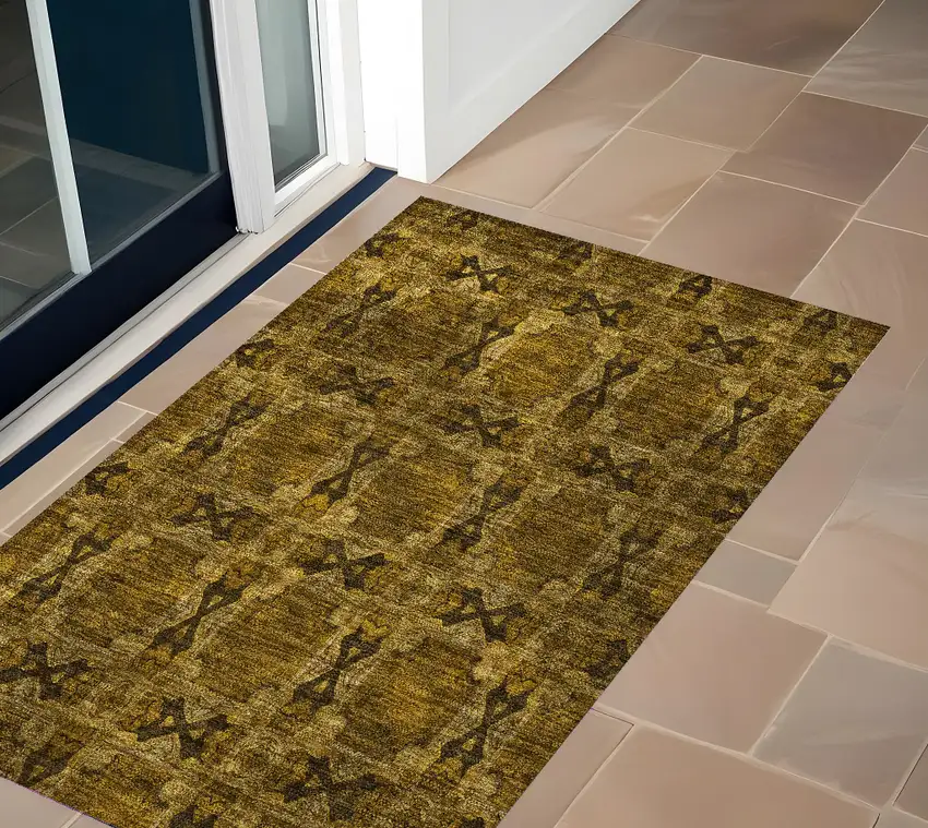 3' X 5' Chocolate Floral Medallion Washable Non Skid Indoor Outdoor Area Rug