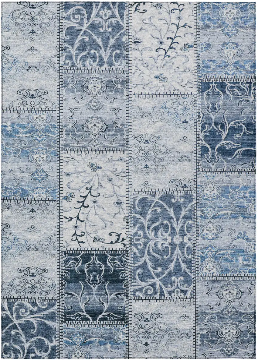 3' X 5' Denim Blue Patchwork Washable Non Skid Indoor Outdoor Area Rug