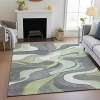 3' X 5' Fern Green Striped Washable Non Skid Indoor Outdoor Area Rug