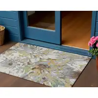 3' X 5' Gold and White Geometric Washable Non Skid Indoor Outdoor Area Rug