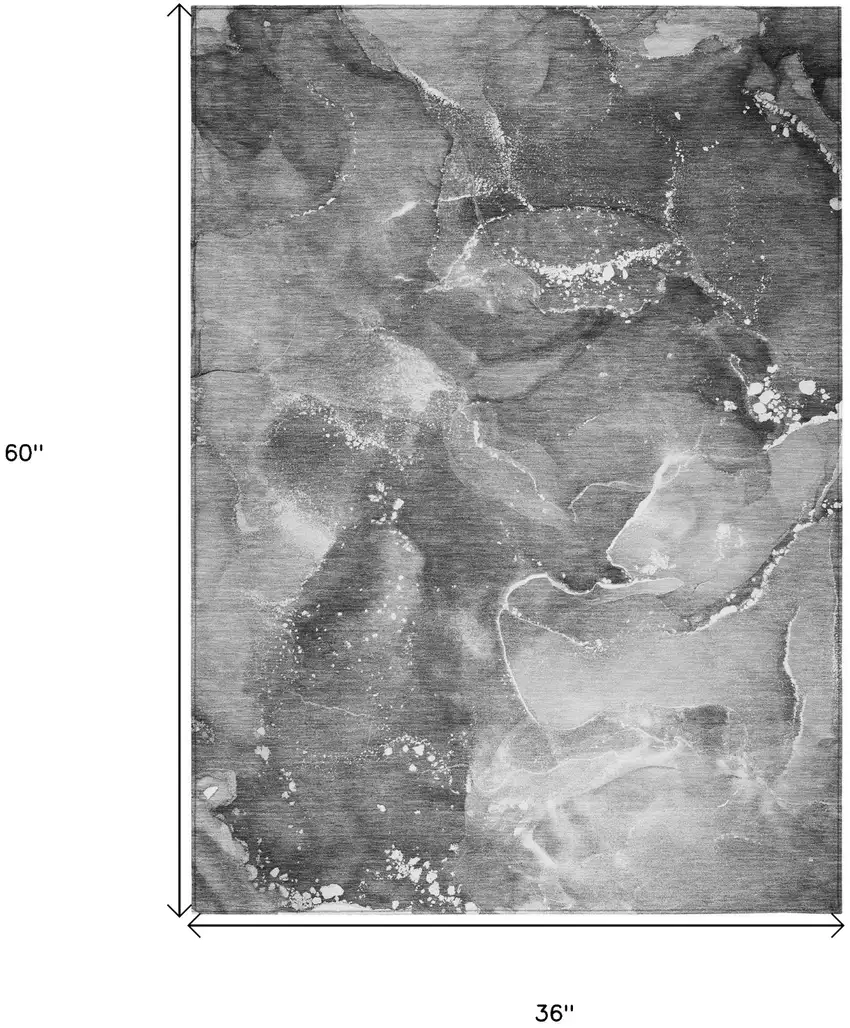 3' X 5' Gray Abstract Washable Non Skid Indoor Outdoor Area Rug