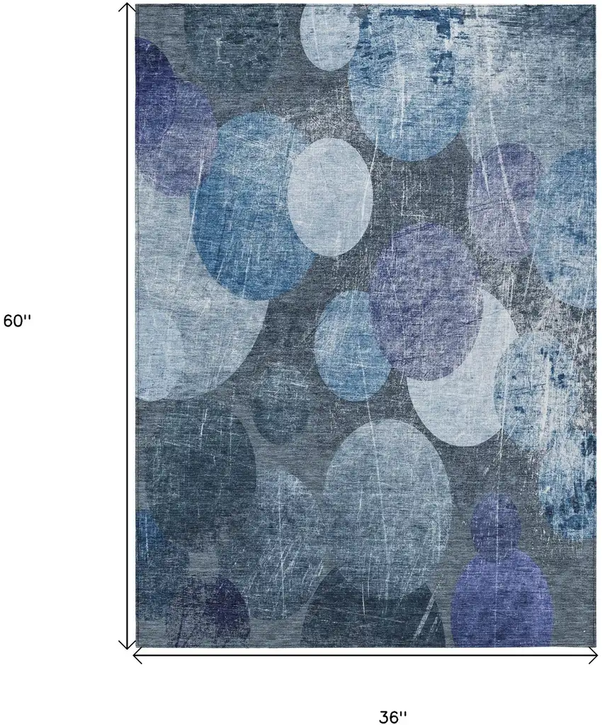 Set an inviting tone in your space with this 3-foot x 5-foot gray and blue abstract washable stain resistant non skid indoor outdoor area rug. This rectangle shaped rug features a abstract design in gray and blue to give it visual interest. A classic shape marries with good looking design for your space ideal for spaces with kids and pets, this rug is stain resistant to help repel stains and spilled liquids. Place this area rug against a hardwood or tile floor and it will enliven your living space with style and sophistication. 36-inch H x 60-inch W x 0.19-inch D