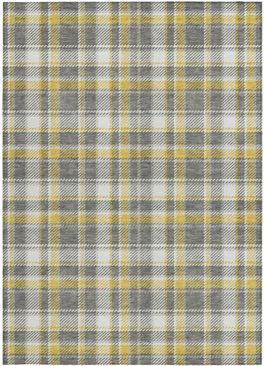 3' X 5' Gray Yellow and White Plaid Washable Non Skid Indoor Outdoor Area Rug