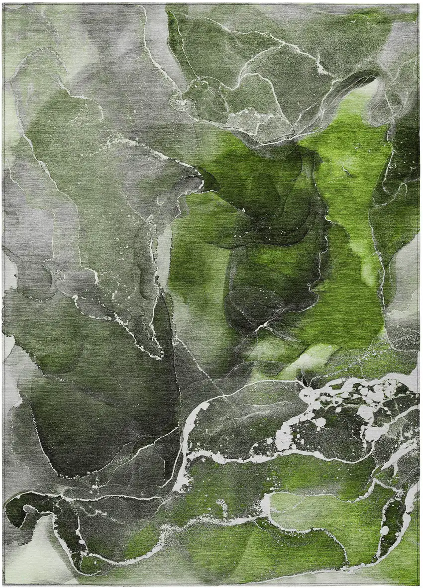 3' X 5' Green Abstract Washable Non Skid Indoor Outdoor Area Rug