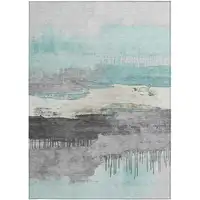 3' X 5' Green Abstract Washable Non Skid Indoor Outdoor Area Rug