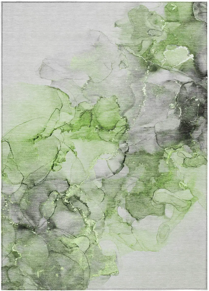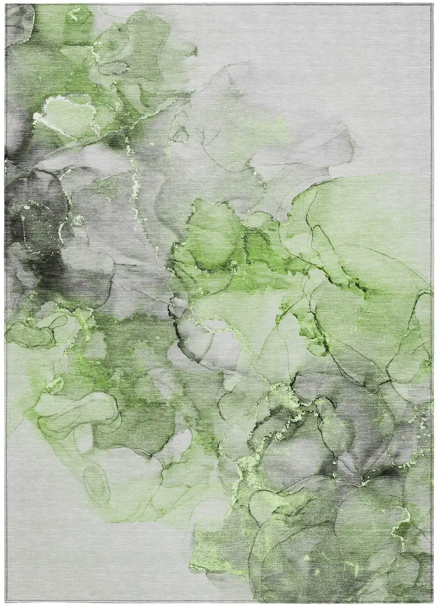 3' X 5' Green Abstract Washable Non Skid Indoor Outdoor Area Rug