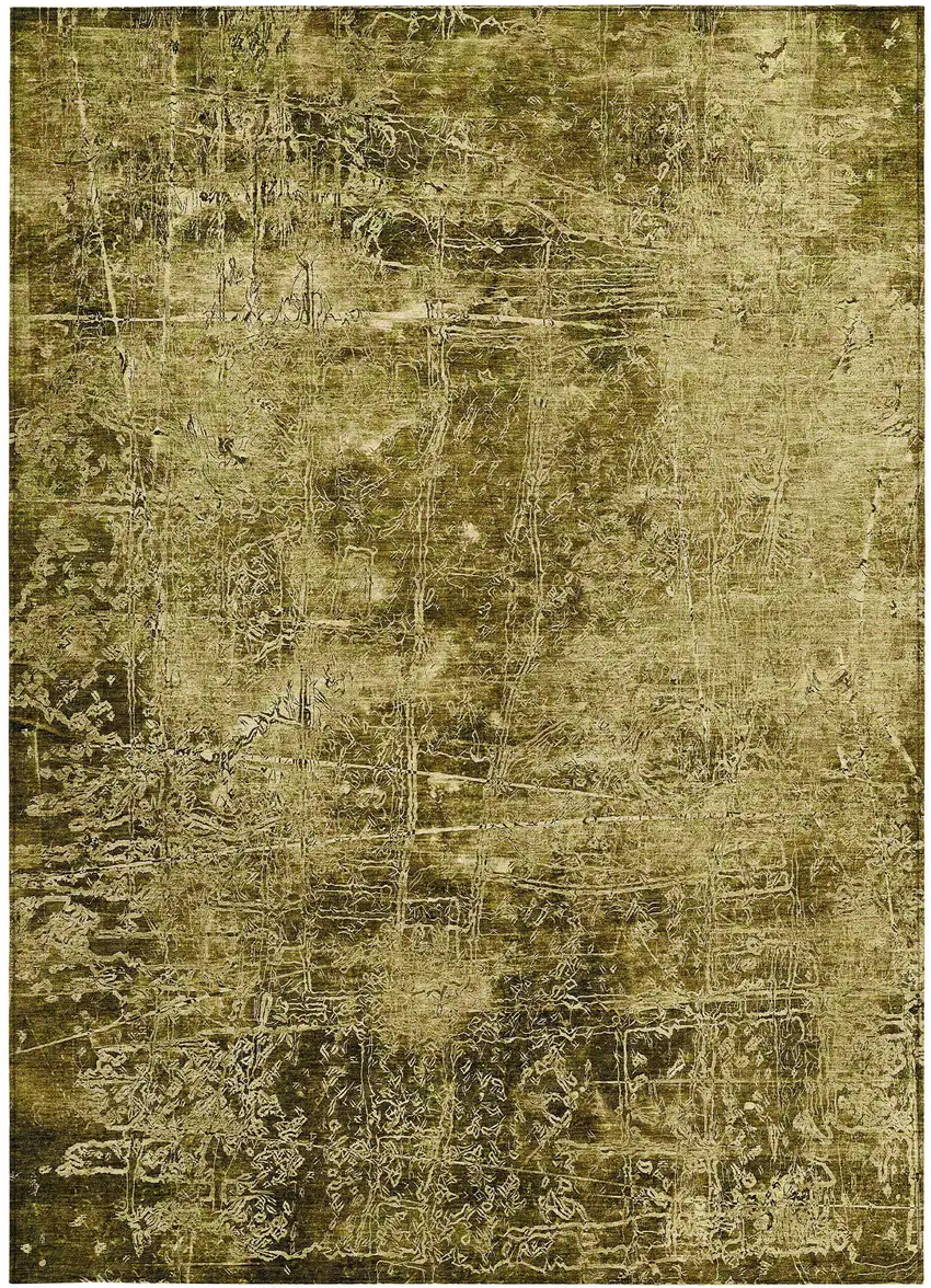 3' X 5' Green Abstract Washable Non Skid Indoor Outdoor Area Rug