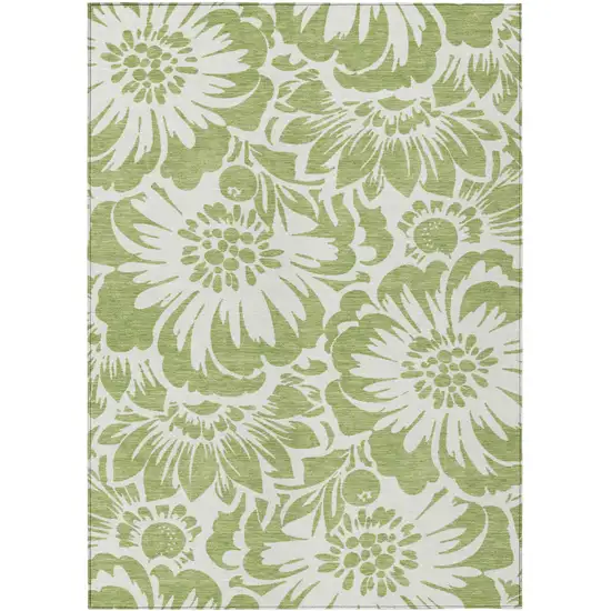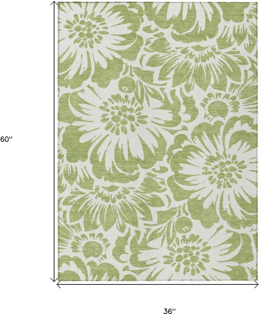 3' X 5' Green and Ivory Floral Washable Non Skid Indoor Outdoor Area Rug