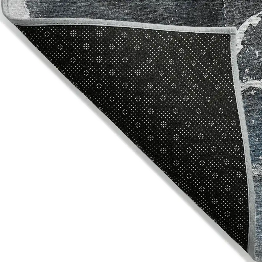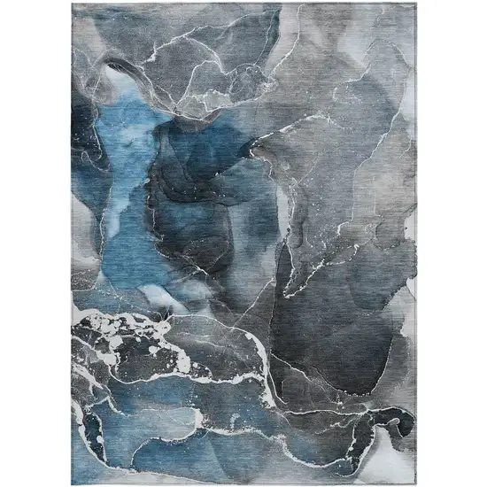 3' X 5' Ivory Blue and Gray Abstract Washable Non Skid Indoor Outdoor Area Rug
