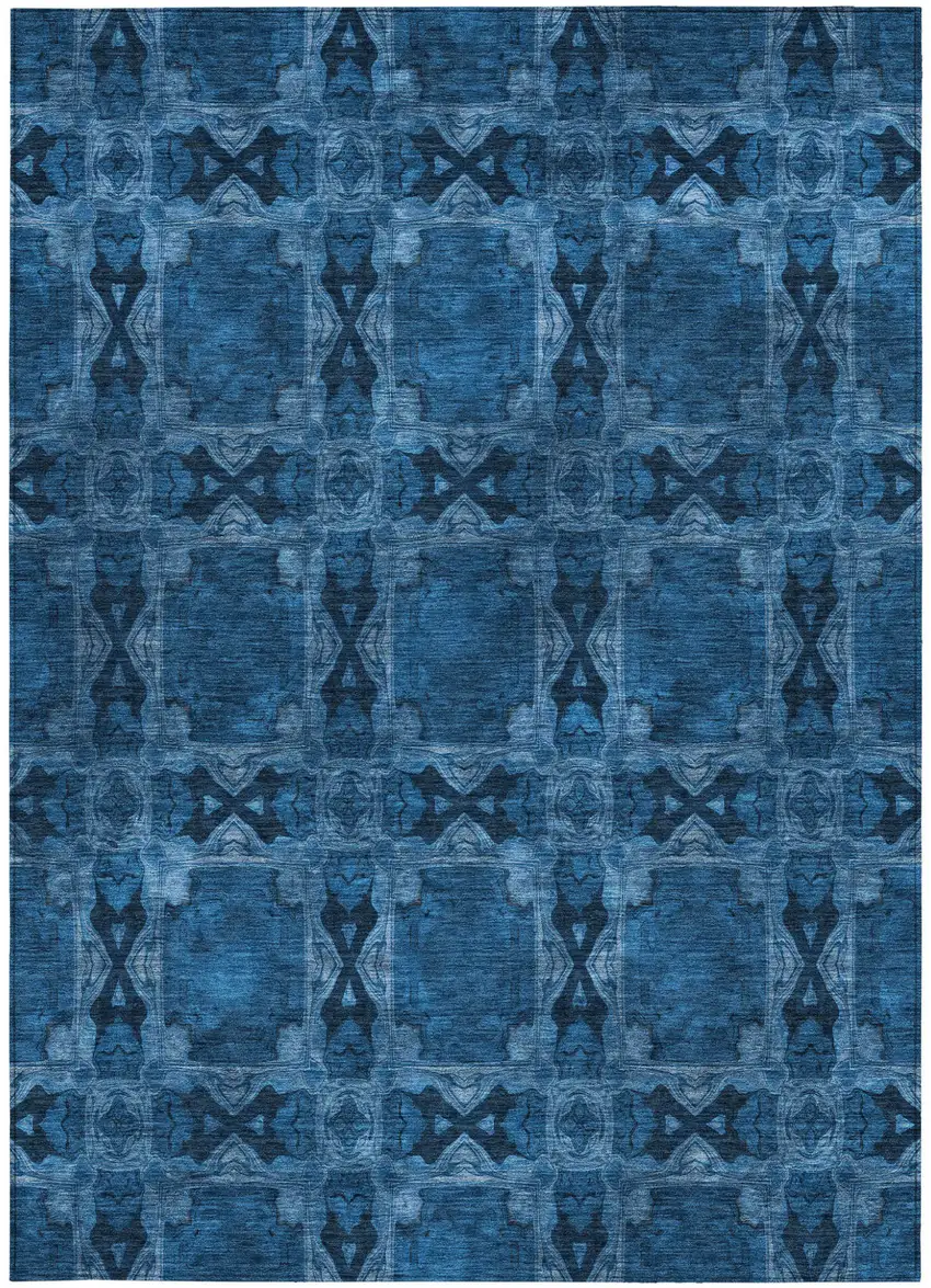 3' X 5' Navy and Gray Floral Medallion Washable Non Skid Indoor Outdoor Area Rug