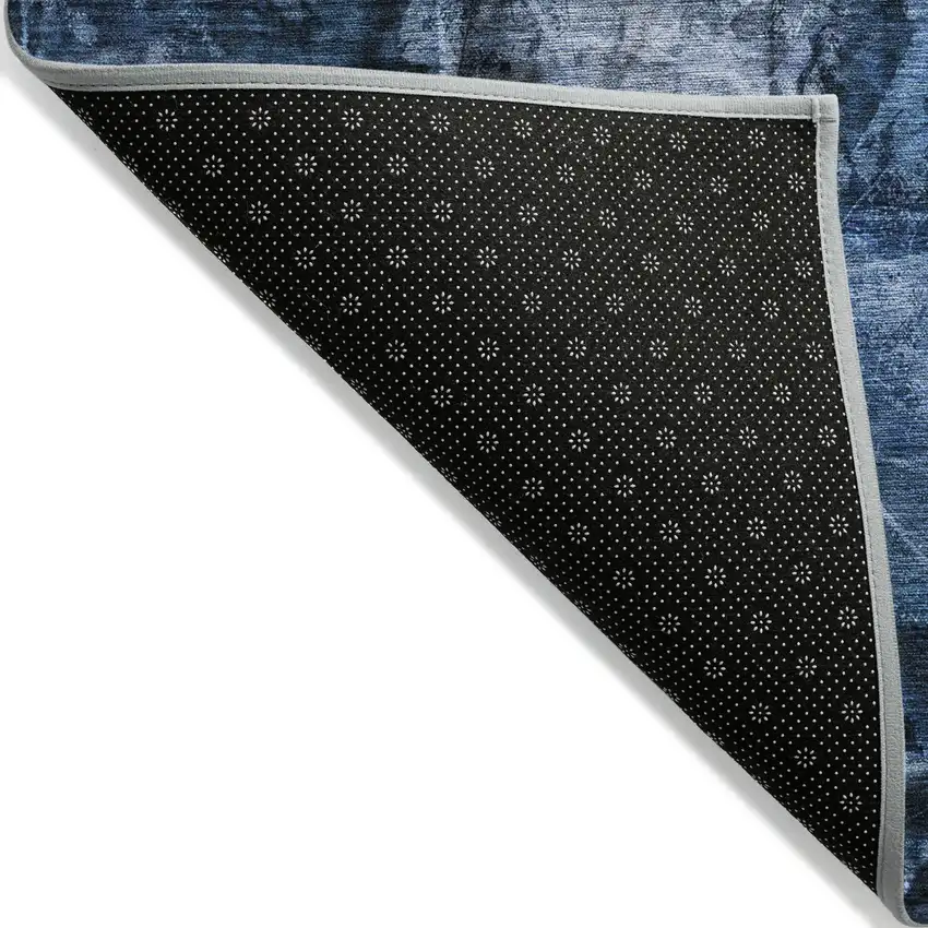3' X 5' Navy Blue Floral Washable Non Skid Indoor Outdoor Area Rug
