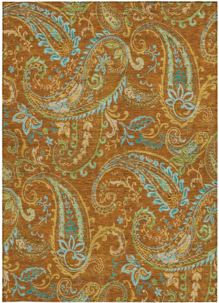 3' X 5' Orange Paisley Washable Non Skid Indoor Outdoor Area Rug