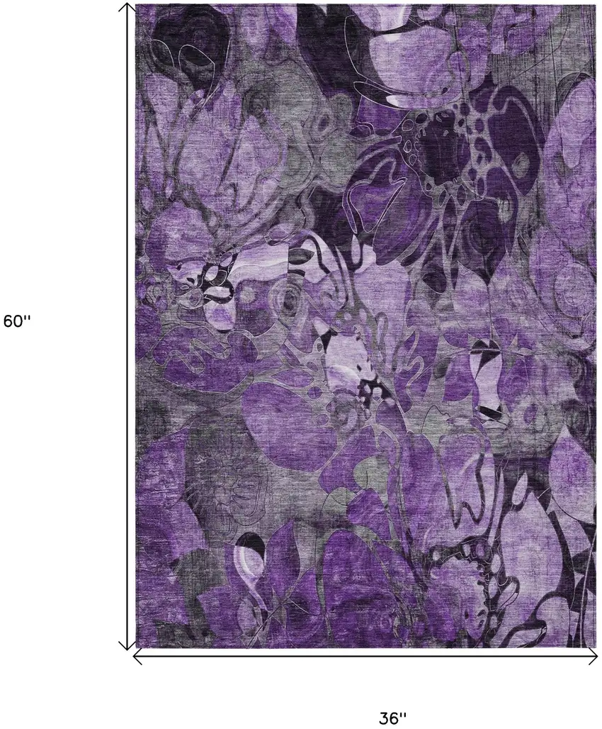 3' X 5' Purple Floral Washable Non Skid Indoor Outdoor Area Rug