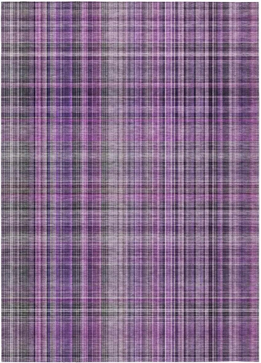 3' X 5' Purple Plaid Washable Non Skid Indoor Outdoor Area Rug