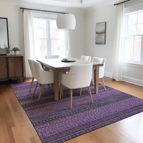 3' X 5' Purple Striped Washable Non Skid Indoor Outdoor Area Rug